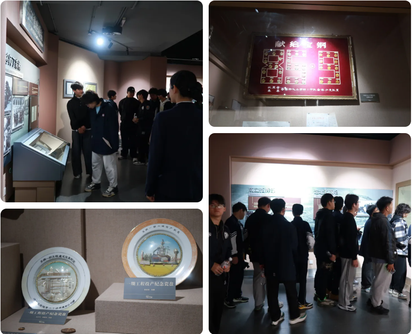 在宝钢历史陈列馆,同学们通过图片、实物与多媒体等多种形式,深入理解其“高质量、高速度、高效益”的发展理念,也从一部奋斗史中,读懂了中国钢铁工业从无到有、从追赶到引领的艰辛与荣光。